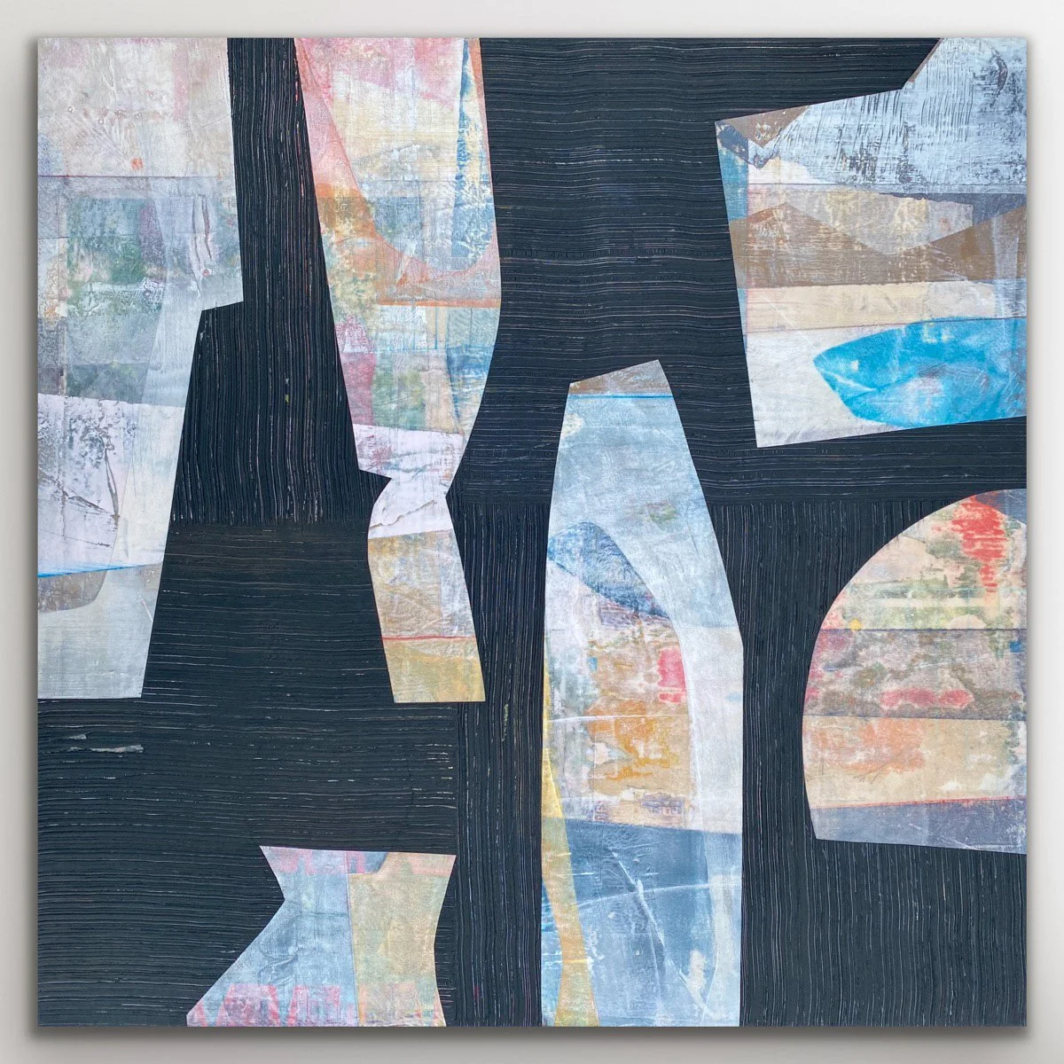 I developed this painting using many layers of acrylic, collage, plaster, transfers and glazes - sanding, scraping and cutting into them along the way to see what was uncovered. I then organized discovered gems by blocking out bold graphic shapes and patterns using masking and plaster. I imbue my paintings with texture and memory, often incorporating mementos of loved ones who have passed.