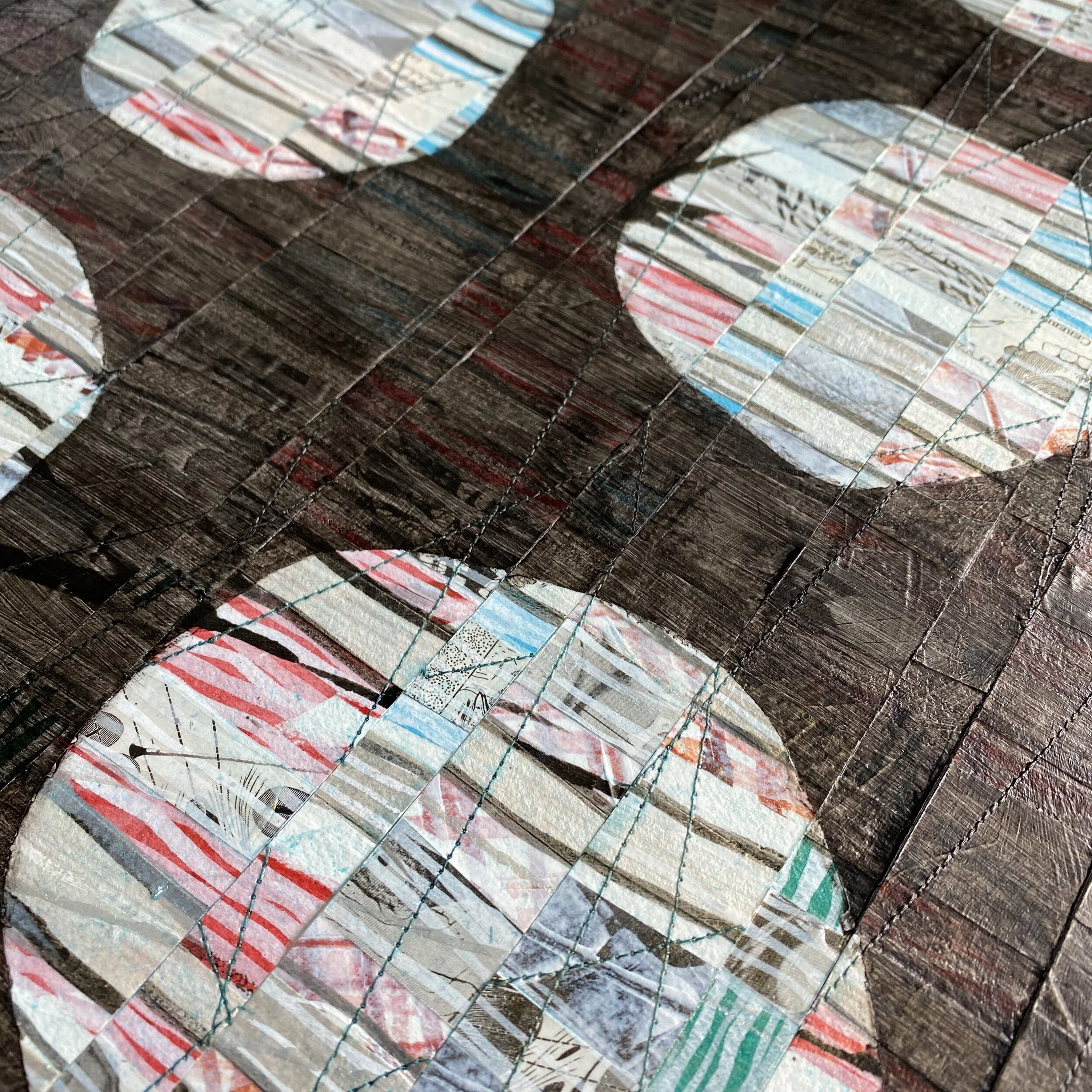 original artwork › Looking Beyond [2022] - 16x16 mixed media original collage with machine stitching on 1 5/8” wood panel Image 1 of 5 Image 2 of 5 Image 3 of 5 Image 4 of 5 Image 5 of 5 Looking Beyond [2022] - 16x16 mixed media original collage with machine stitching on 1 5/8” wood panel $425.00 panel edges are painted matte blacksigned and dated on the backsealed with UV semi-gloss topcoat and ready to hang Add To Cart Added! panel edges are painted matte blacksigned and dated on the backsealed with UV semi-gloss topcoat and ready to hang