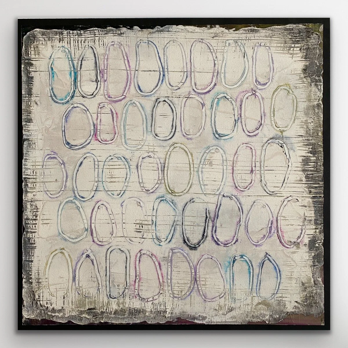 original artwork › Ghost Hugs [2021] - 18x18 mixed media original painting on 2 1/2" cradled wood panel Image 1 of 5 Image 2 of 5 Image 3 of 5 Image 4 of 5 Image 5 of 5 Ghost Hugs [2021] - 18x18 mixed media original painting on 2 1/2" cradled wood panel $500.00 panel edges are painted black w/ multicolor washsigned and dated on the backwax sealed and ready to hang Add To Cart Added! panel edges are painted black w/ multicolor washsigned and dated on the backwax sealed and ready to hang